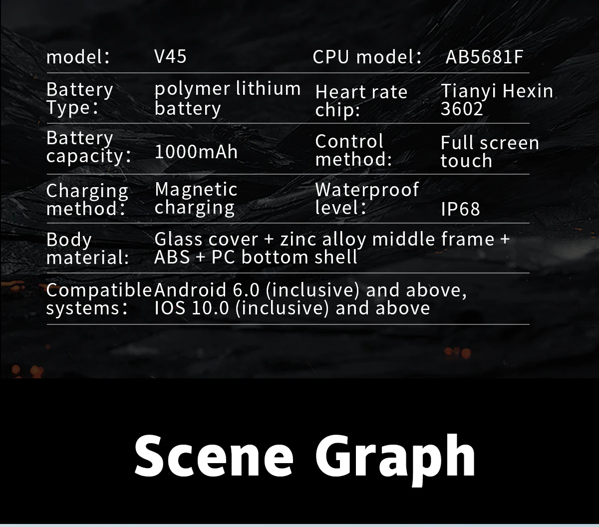 1000mAh Battery Bluetooth Calling & GPS Sports Tracker V45 Smartwatch black